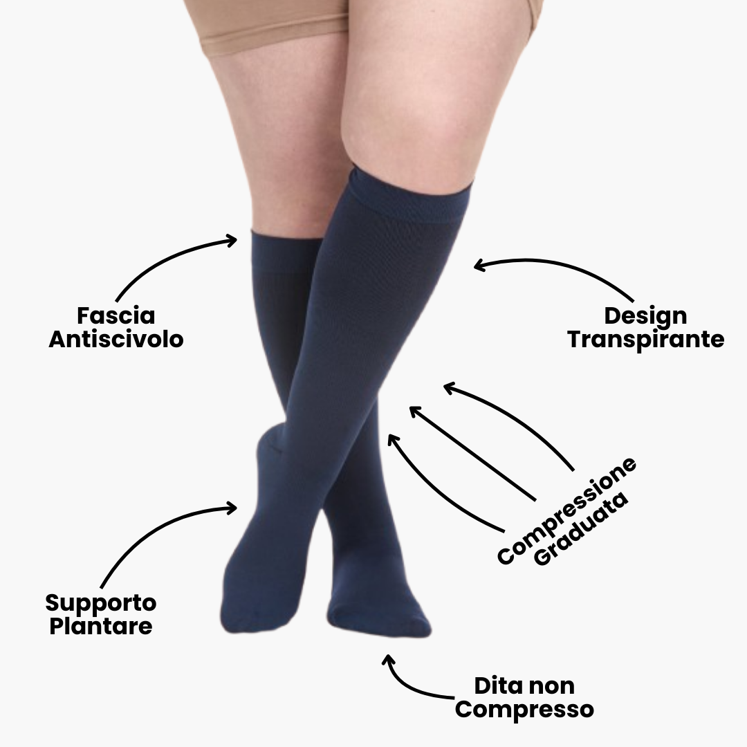 Le uniche calze a compressione progettate per agire sulla vera causa di gambe pesanti e cattiva circolazione.